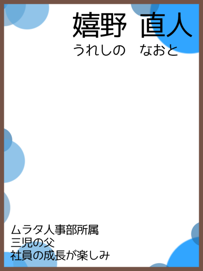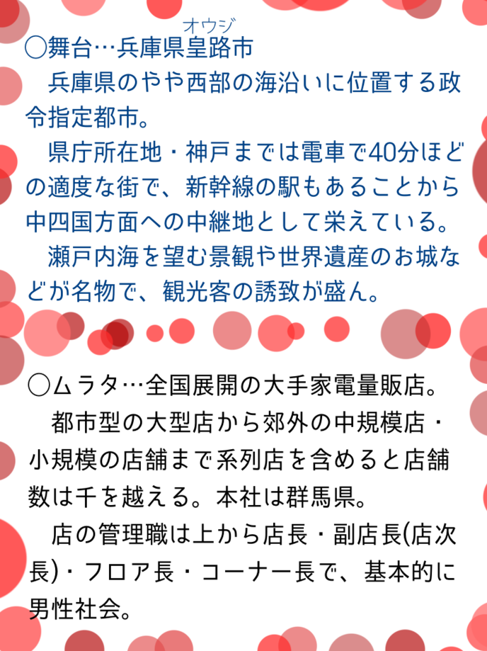 僕は家電量販店・ムラタの本社人事部所属で、現在は出生地である兵庫県に住んでいる。そこを拠点に近畿地方の北部店舗を巡店しながら、管理職候補を見出したり昇進・中途採用面接を行ったりしている。
