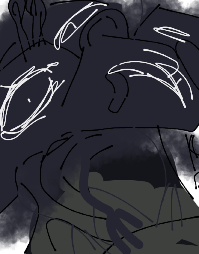 「あー...思考を凝らしてるとこ悪ぃけど色々説明するな。ここは MaterialGallery っつうんだ。略してまてぎゃら。なんちて。...で、さっきの黒モヤは不純物って言って、まぁ...いわゆる敵だよ敵。んで、さっき投げたレコードっつぅ...うーん...お前の記憶の具現化?みたいのんを取り込んでぶっ壊す~みてぇなゴミ能力があんだよね。んで、それを阻止しなきゃ~だから不純物をぶっ倒すんだよ。うん。」