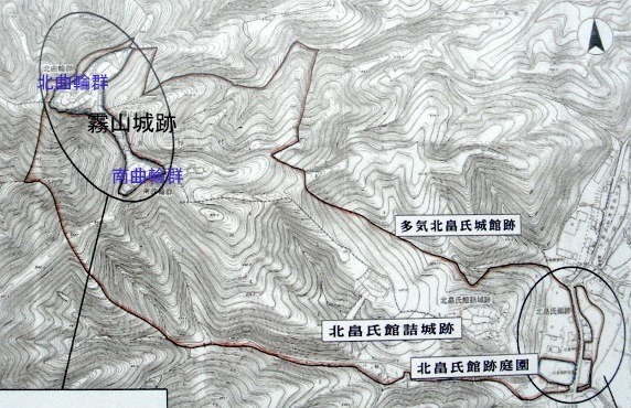 そして北畠氏の本拠とでもいうべき城が霧山城である。現在の三重県津市、JR名松線比津駅から歩いてちょうど一時間という山奥に、北畠神社が建立されている。そこからさらに、はるか山頂部まで登ると標高約六百メートル、比高約二四〇メートルの山麓に霧山城は存在した。