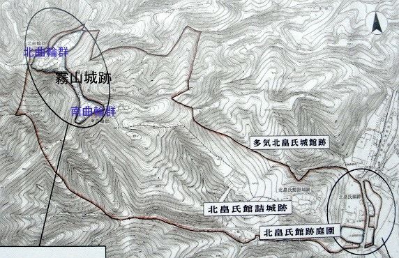 ちょうど北畠神社の境内あたりが北畠氏の平時の居館・多芸御所が存在した。そして居館背後の山の尾根の突端に詰の城を築き、さらに尾根沿いの山頂付近に霧山城を築いた。多芸御所・詰の城・霧山城の3城を含めて多気城ともよばれていた。