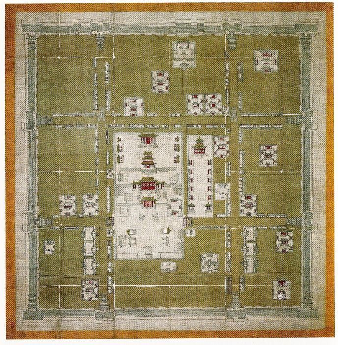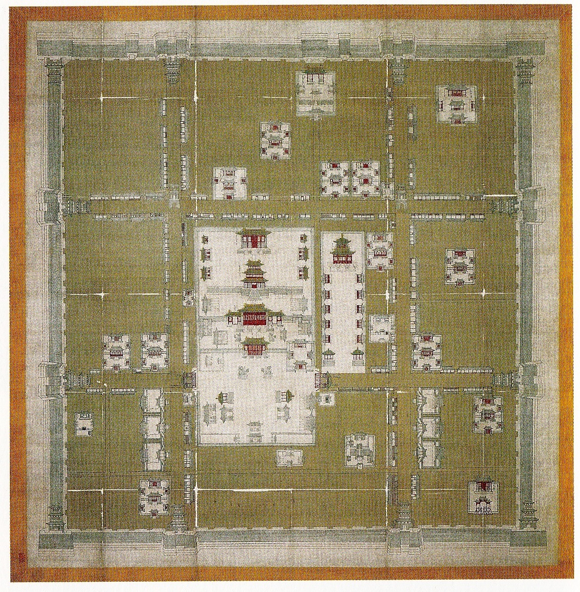 清の時代になって、この時の後金の都・瀋陽の様子を詳細に描いた絵図面で「盛京城闕図」というものがある。これを見ると中央の宮殿から、北に向かって中心軸がのび、北端に「汗王宮」と記された四合院風の建物がある。この汗王宮こそが、ヌルハチの私的な生活スペースとでもいうべきものだった。