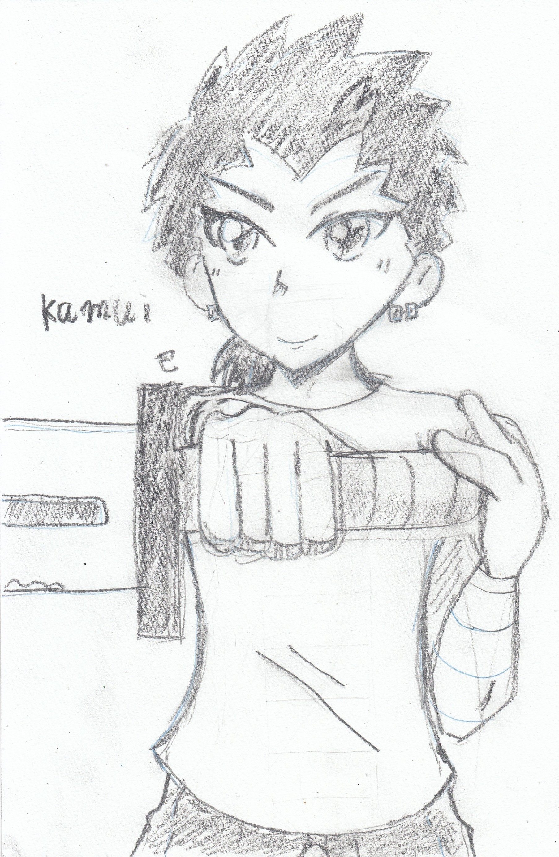 真面目だが強気で、どこか挑発的な笑みを浮かべる青年。