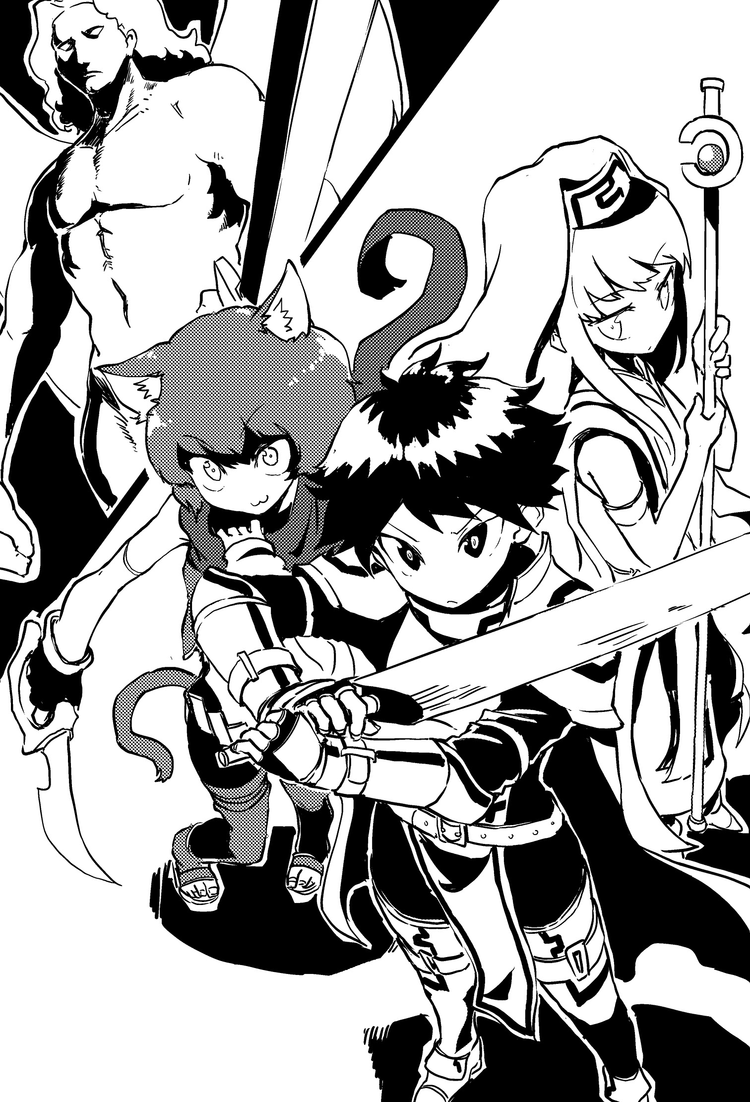 頭のてっぺんから足の先まで白で統一した少女と、猫耳と尻尾の生えた獣人の女の子という個性的な面々で打倒魔王を目指している。