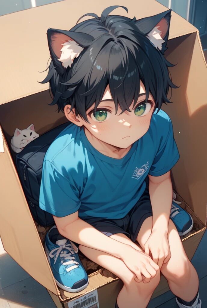 猫の鳴き声が聞こえてドアを開けた。だけどそこにいたのは猫じゃなくて少年だった。しかも服を着ていない。中学生くらいか、青みのかかった黒い髪に丸っこい目をして僕を見てくる。体に毛は生えていない。綺麗なすべすべした肌をしている。