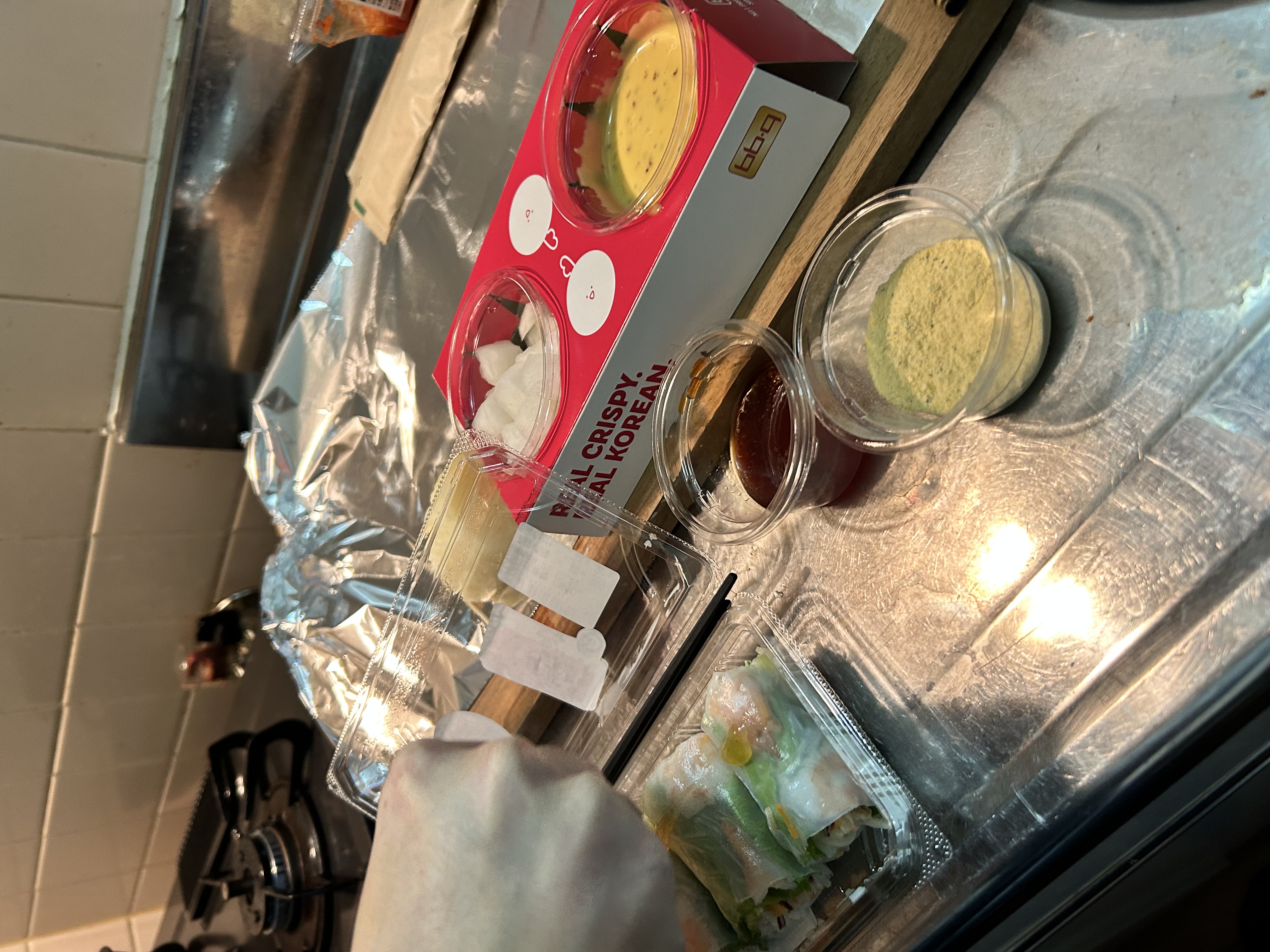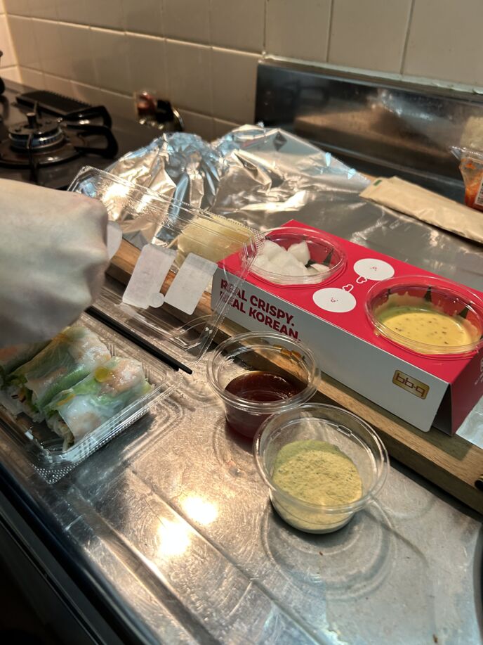 少しいい銘柄の日本酒と、チキンとケーキを予約した。ピザも欲しくなって当日にピザも買いに行った。だけど悲しいことに引っ越しの準備で部屋は散らかっていてクリスマスパーティーは必然的にキッチンしか会場が空いていなかった。シルバーのシンク台の上にパンをこねる時に使っていた木の板を置いてその上にアルミホイルを敷いた。オーブンで焼きなおしたチキンと、ピザはオーブンレンジの上に置いて狭い豪華なクリスマスパーティーは始まった。