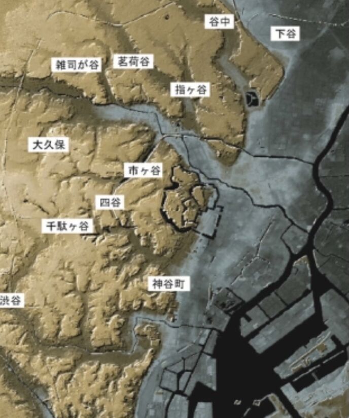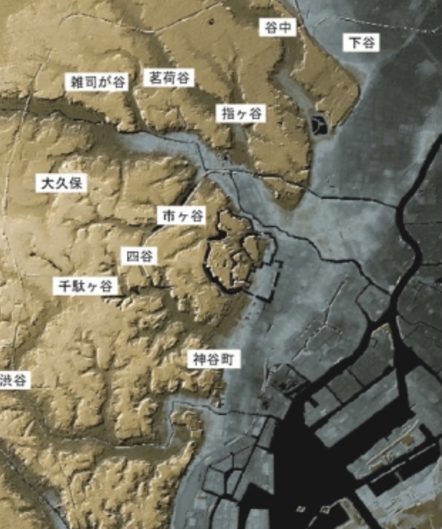 「市ヶ谷、四谷、千駄ヶ谷の順番で谷の奥へと繋がっています。