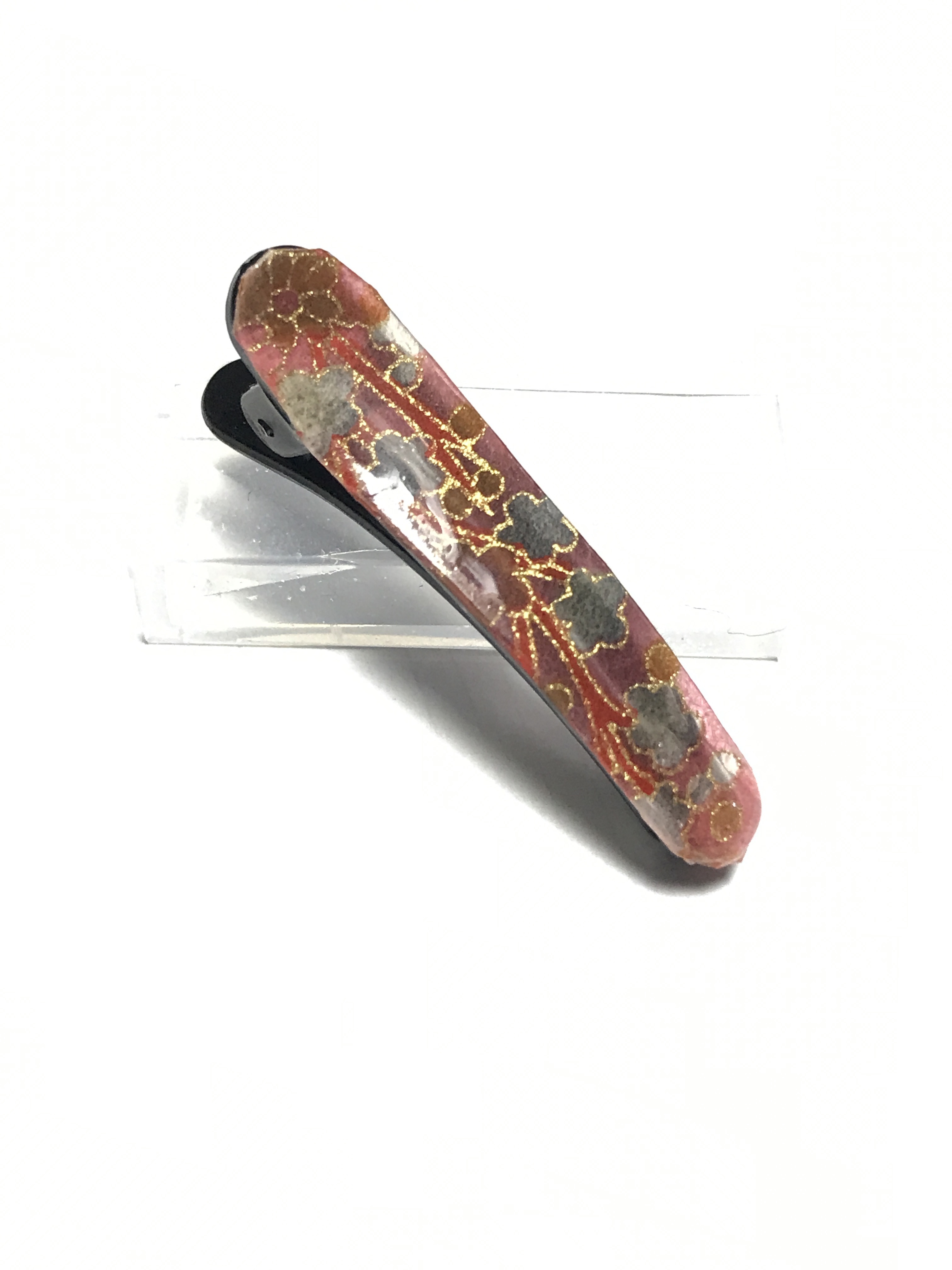 レジンを使い、髪留めに和紙を貼り付けた髪留め。