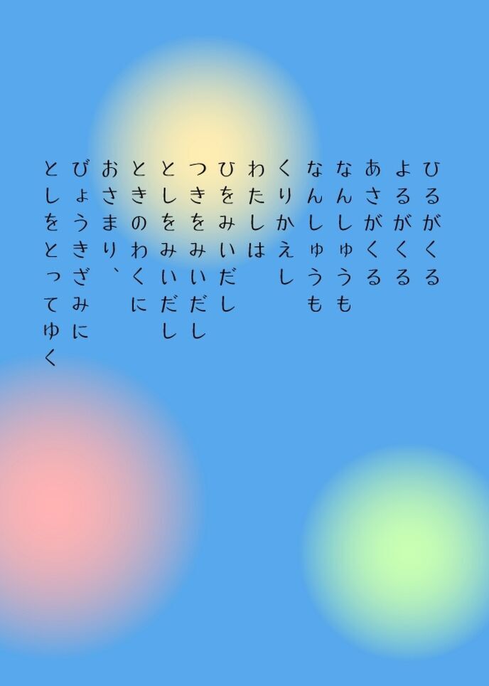 しおりを挟むわたしたちは生まれたときから、時の中に生きています。生きている以上そこから離れることが出来ませんが、それは私たちが年をとるからです。年をとるから、私たちは時を感じます。