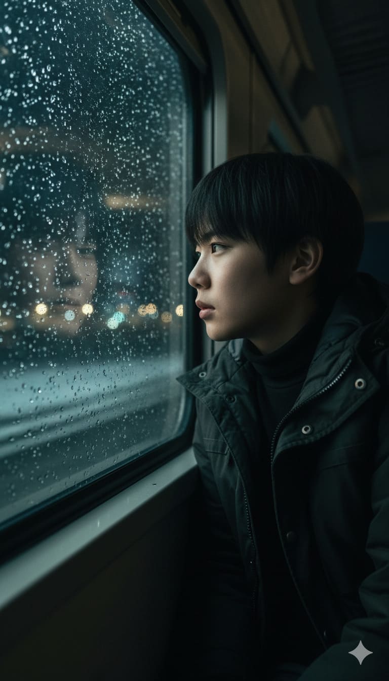 窓を打つ冬の雨粒は「夜の海を航海する船に降り注ぐ、星の飛沫」のような幻想的な輝きを放ち、僕の瞳には、現実の幼さではなく「孤独を引き受けながらも、自らの意志で未知の地平線を見据える若き航海士」としての鋭い光が宿っています。