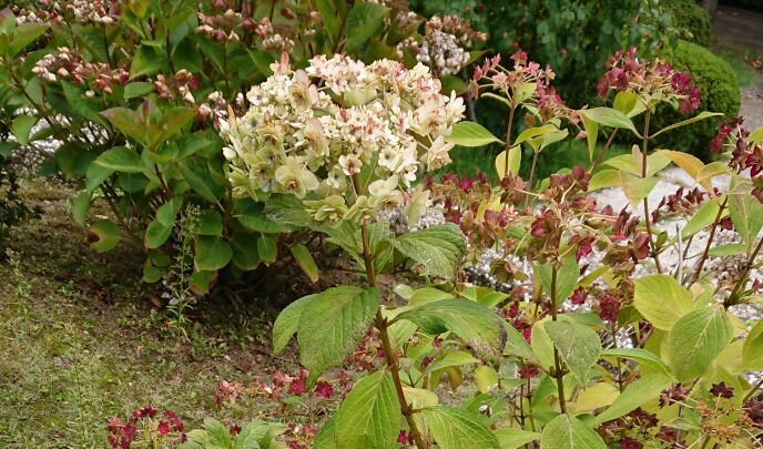 草花の高低が計算されながら、自然であることを忘れていない、色、種類、木々。溢れるバラの花。やがて野性味の強い、野原のようなインフォーマルガーデンに流れるように変化し、庭はいつのまにか日本庭園へと移り変わってゆくのだ。