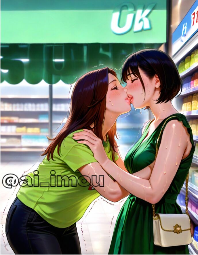 トイレットペーパーが切れかけていたことを思い出し、美咲は近所のドラッグストアへ向かう。洗剤の棚前で近所の瑞希さんと鉢合わせする。40代のガッチリしたベテラン主婦。「この洗剤、汚れ落ちいいかしら?」と尋ねると、瑞希さんは「バッチリよ」と大げさに笑う。瑞希さんの唇が近づき、濃厚なキスが始まる。汗と柔軟剤の匂いがツンと感じる間もなく、ぐるりと豪快な瑞希さんの舌の動きに翻弄される。頭がふわっと軽くなり、脈が速まる。ヌルっと抜ける舌に美咲は軽いめまいを感じつつ、「試してみよっと」カゴに洗剤を入れる。店内に響く特売のアナウンスに、「ラッキー」と小走りで移動する。