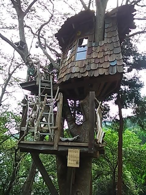 階段の左手のお洒落なツリー・ハウスに興味が惹かれ、近づいた。だが「登ると危険です」の注意書き。残念。ハウスの下にはハンモックが吊されてある。これも古びていて、乗れば網目が裂けそうだ。こちらも、残念。さあ、どうしたものか……。