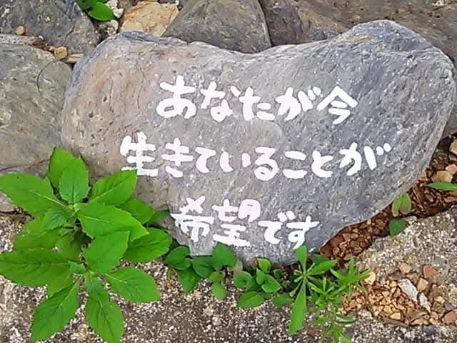 外庭に出てみた。整えられた植木、砂利が敷き詰められた中に置かれたいくつかの踏み石もしっとりと落ち着きを与えてくれる。庭の一段高いところに、もう一つ庭がある。こちらの裏庭は、敢えてなのか整備されていない。上がってみると無造作に、いや意図的に無造作に見えるように、いくつかの平たい石が置かれている。石には白い文字が。ドキリ、とする。腰をかがめて読んだ。