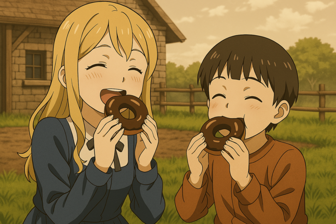 ユリウスは幸せそうにドーナツをほおばる。