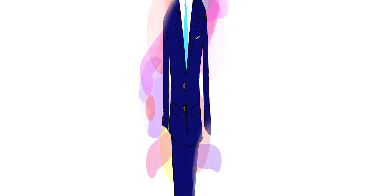 デパートの仕立てスーツ&ワイシャツ売場に、花束と洋菓子を手にした見慣れない熟年男性が現れた。