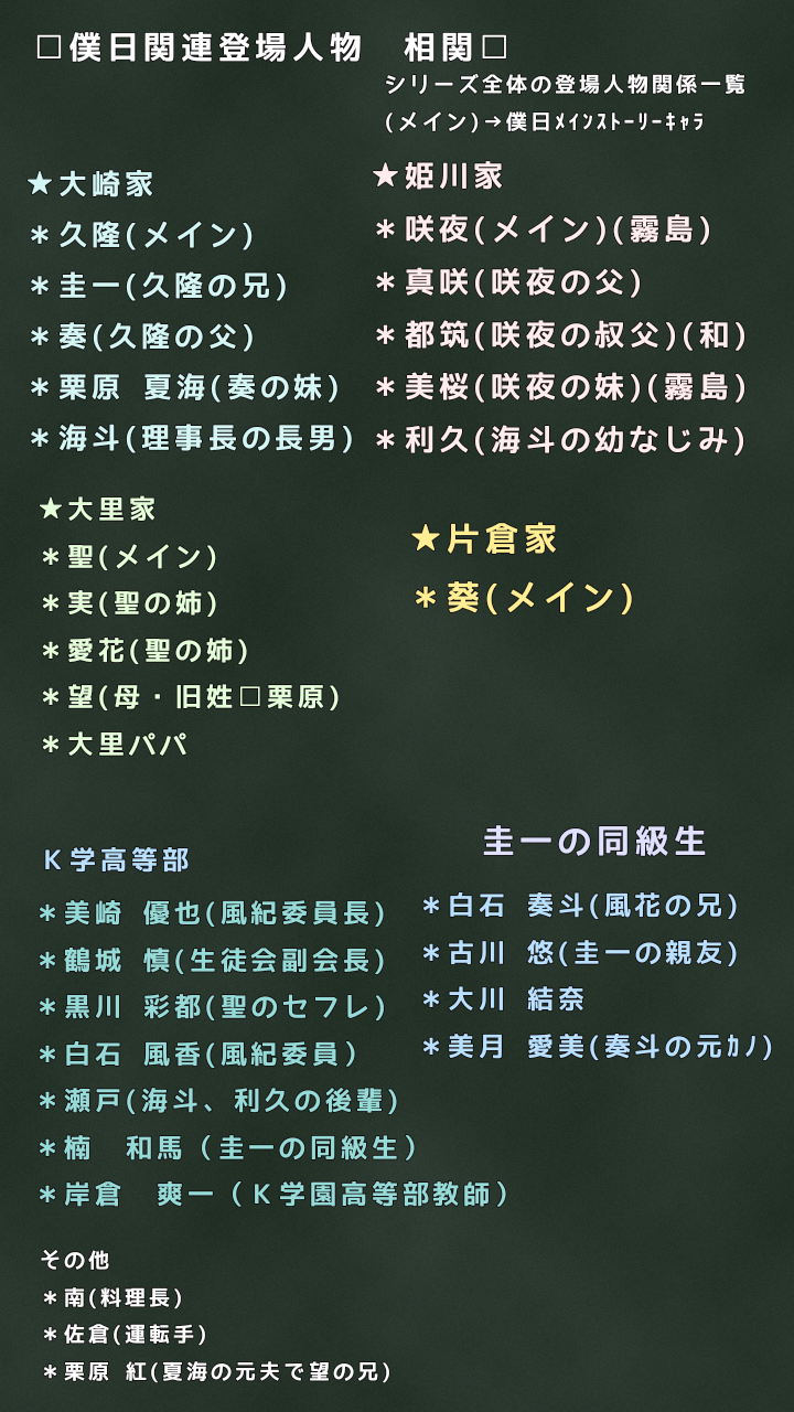 僕日共通設定・僕日登場人物一覧(イラストあり)