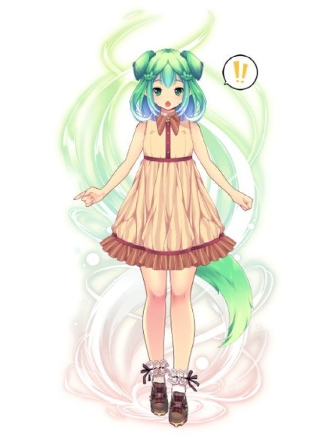 まず目を引くのはライトグリーンの髪色であろう。肩に届くか届かないかの長さで切りそろえられた髪は、サイドを編み込み、毛先は内向きにゆるやかなカーブを描く。編み込みのやや上側にちょこんと添えられた犬耳のようなものがとても可愛らしい。