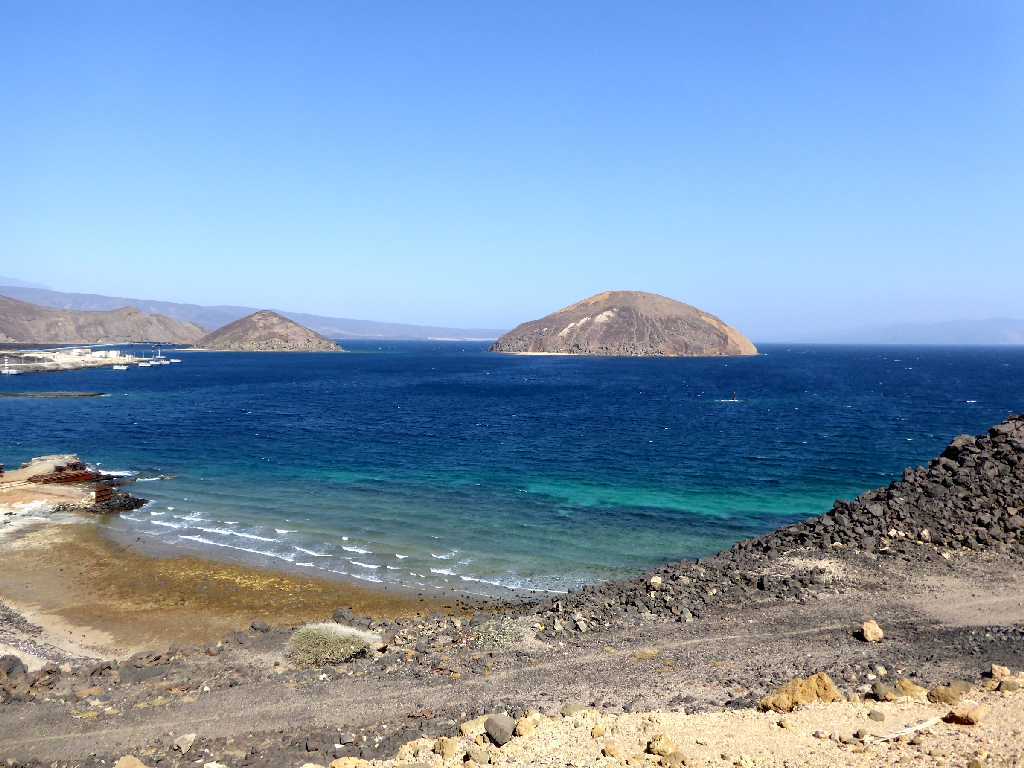 『このアース・ポートは、ここ、グベ島の赤道上に、陸上部分と海上部分に分けて建設されています。』