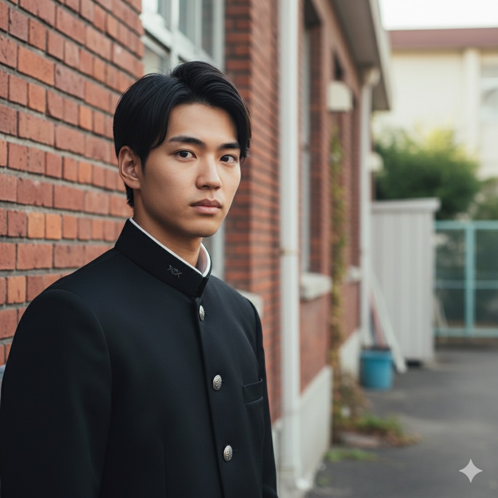 一朗は制服の上から古びたダッフルコートを羽織り、玄関で母にネクタイを直してもらっていた。