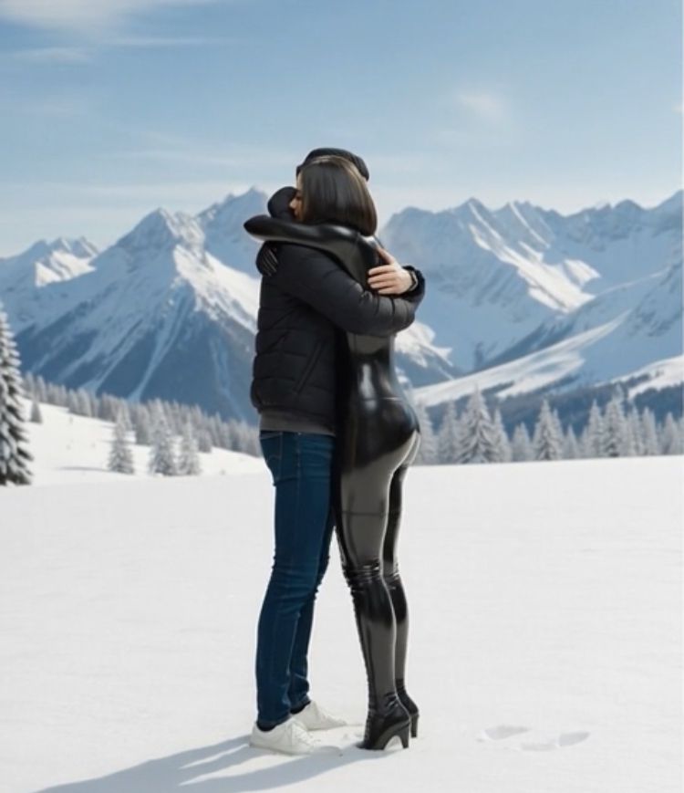 真白のラバー生地の衣装は、雪の光を反射してきらりと輝き、抱きつくたびにかすかにきゅっと音を立てた。