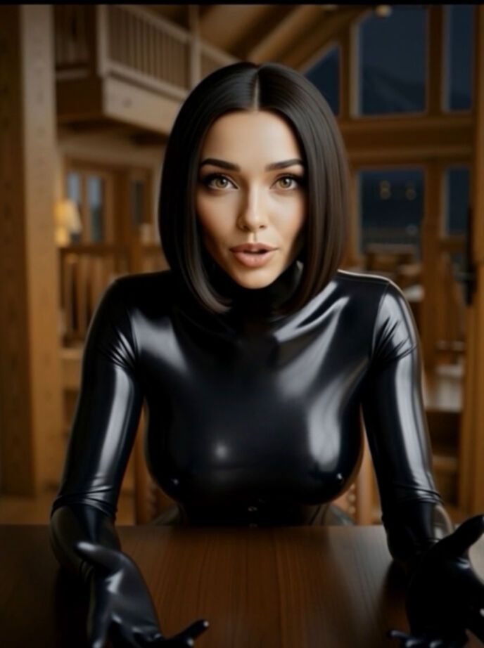 腰を絞るラバーコルセット、金色に輝く瞳、そして短く切り揃えられた黒髪が、彼女の白い肌を一層際立たせている。