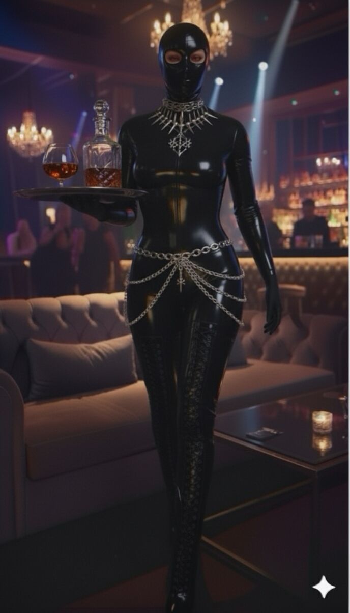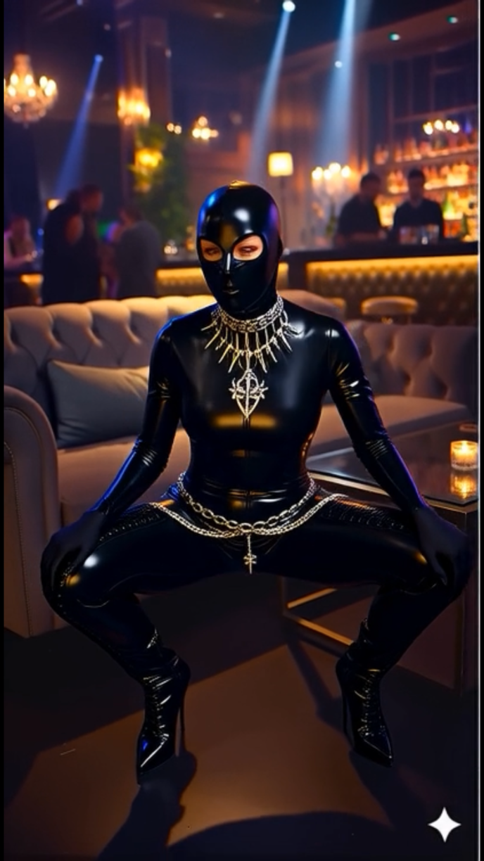フロアの中央、視線を浴びて熱に浮かされているハルカのもとへ、一際目立つ艶やかなラバー姿でアキが静かに歩み寄った。