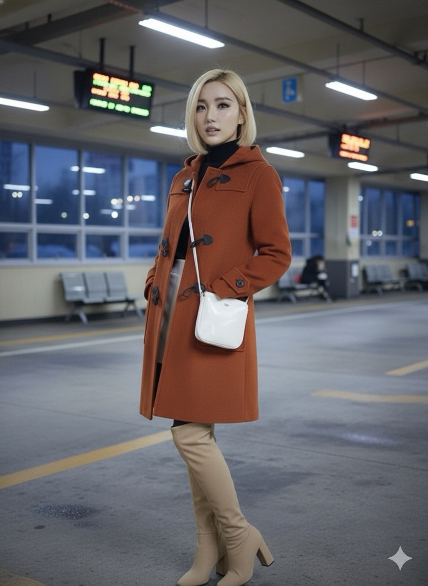 朝の光がようやく街を金色に染めはじめたころ、大学近くのコンビニの前に、ひときわ目立つ長い黒髪の女性が立っていた。