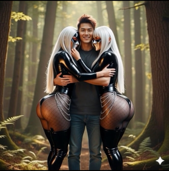 二人の笑い声が森に響き、ラバーの艶が光の中で妖しく揺れた。