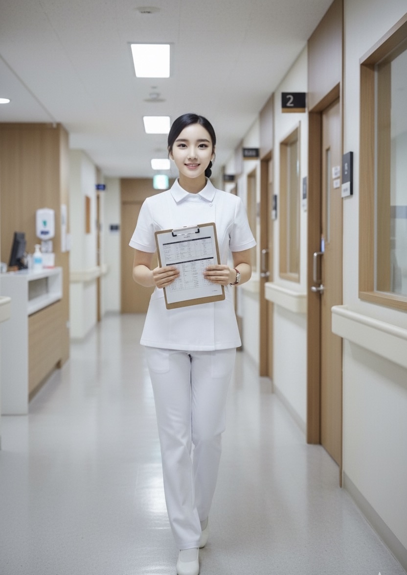 順子は、新品の白衣のユニフォームを着て、カルテを手に病棟を歩いていた。