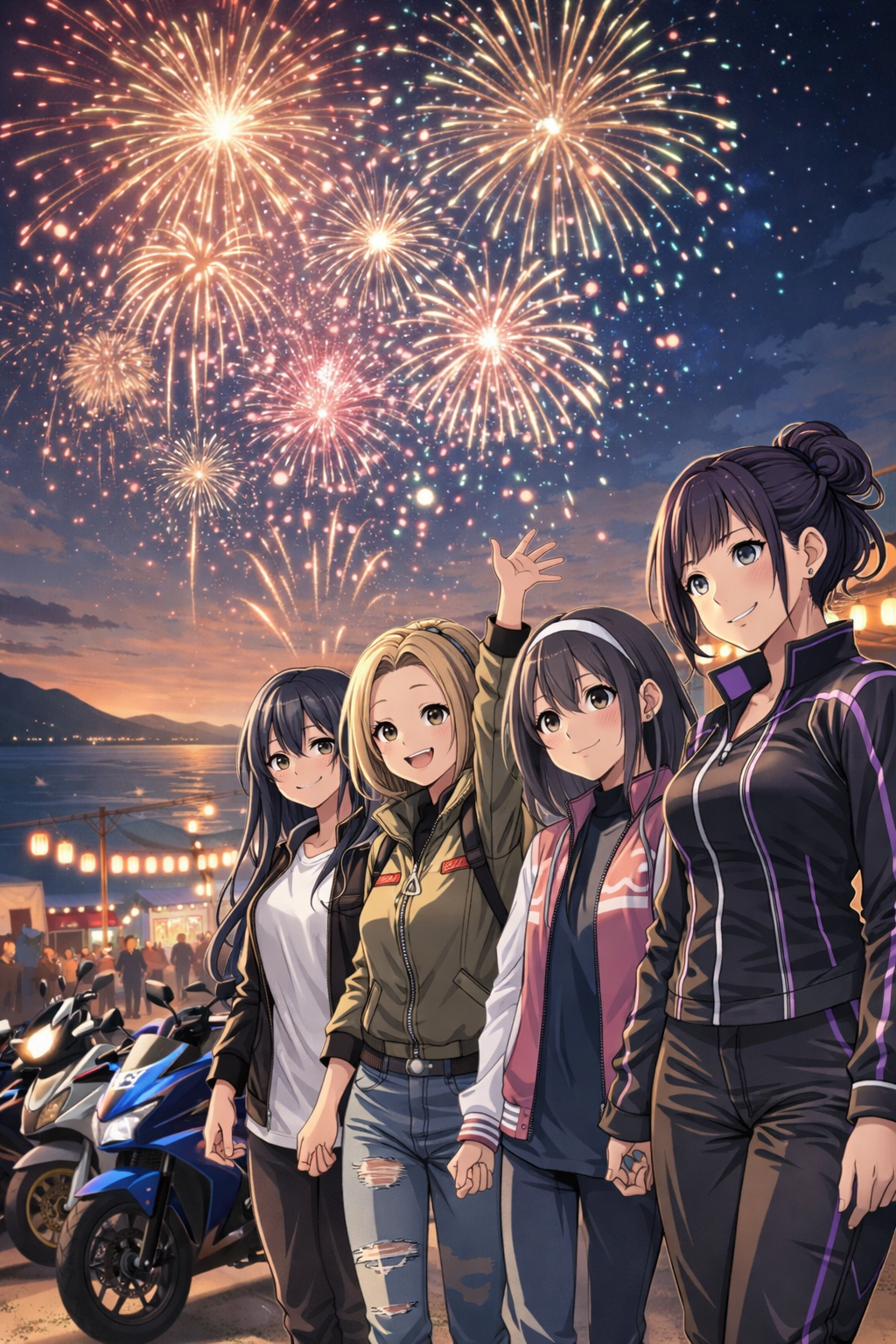 夜空に、最初の花火が打ち上がる。