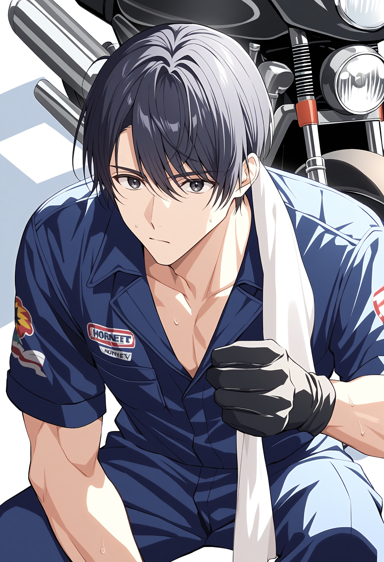 結の前で、彼はゆっくりとバイクカバーをめくる。