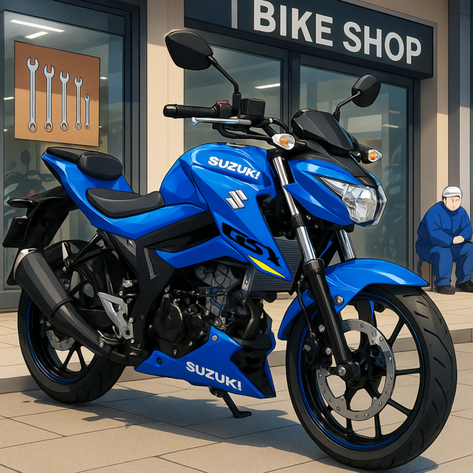 「GSX-S125。スズキの原付二種。見た目はスポーツだけど、扱いやすくて軽快なバイクだ」