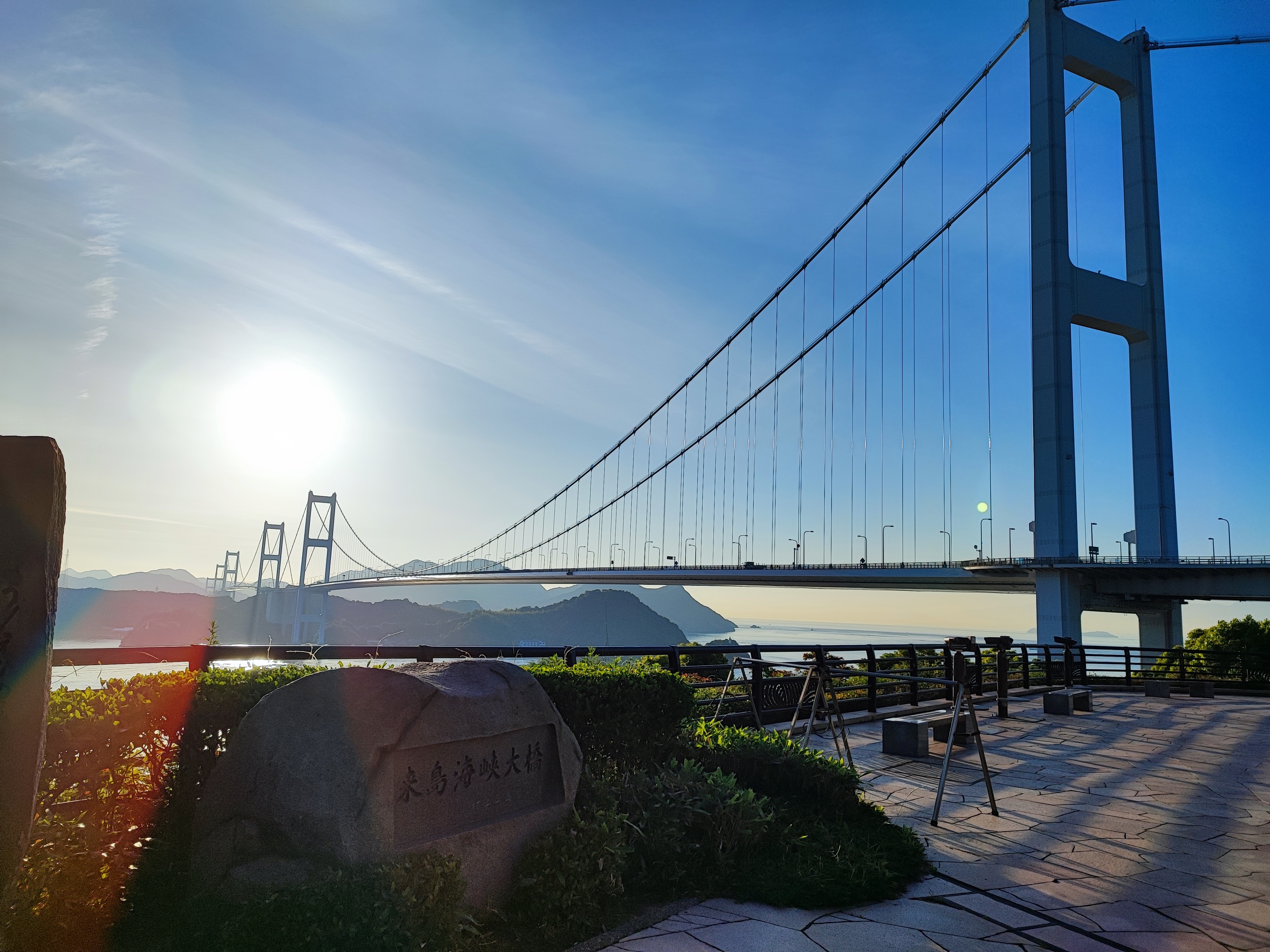 そして――巨大な来島海峡大橋が空と海をつなぎ、圧倒的な存在感を放っていた。
