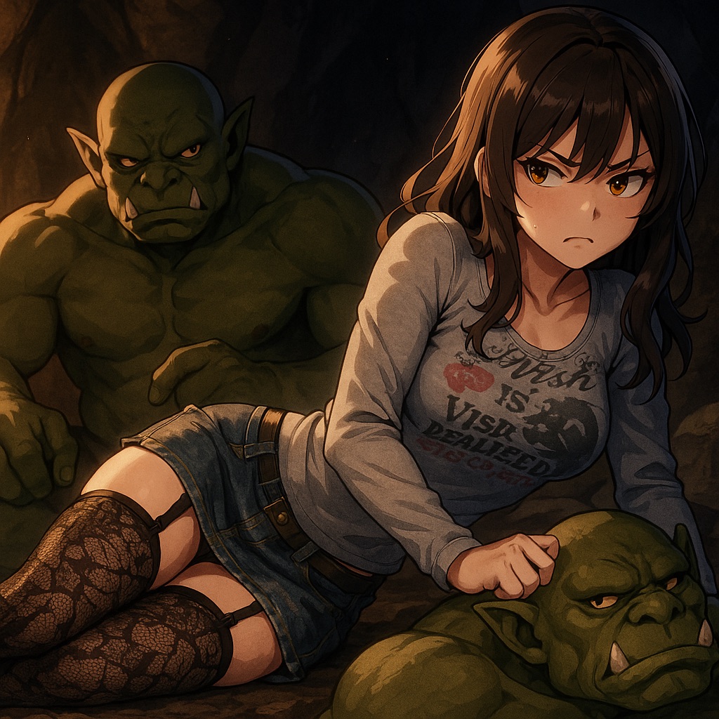 気持ちいいのか初めて吐息を漏らし始める…。 代わって服を捲り上げブラを外し胸を揉むもう一方のゴブリン。 回収したブラのニオイを嗅ぎ激しく勃起したイチモツ…。 吐息を聞いて我慢できなくなったゴブリンは代わるように頭を抑えつけイチモツを突っ込む。 意識が遠のき力が抜けた私はしっかり咥えられることがままならず頬を抑えられ窄ませるようにもう一方のゴブリンが行う。