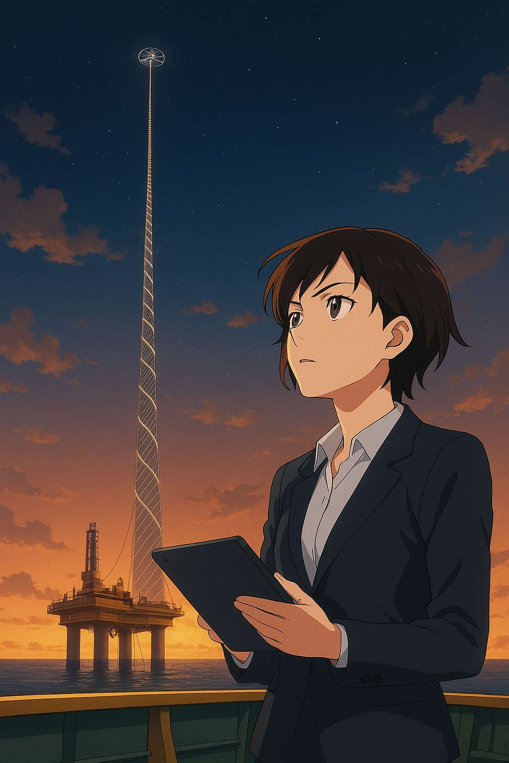 しおりを挟む『KIZUNA』構想が国際会議で発表されたその翌年、ギアナ宇宙センター沖の洋上に、世界初の海上宇宙エレベーター基礎アンカー基地が建設された。