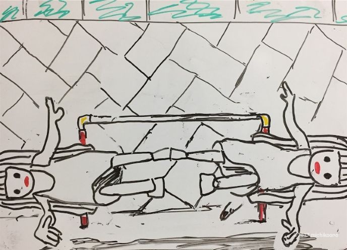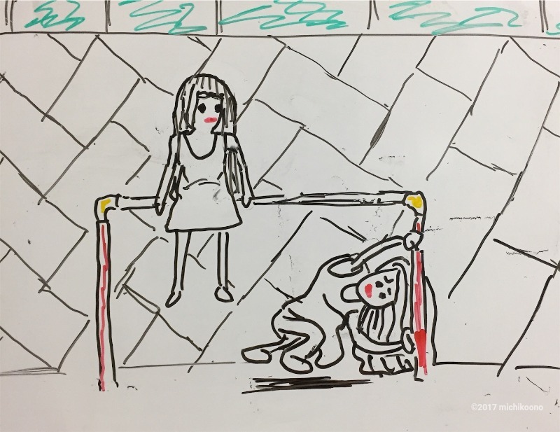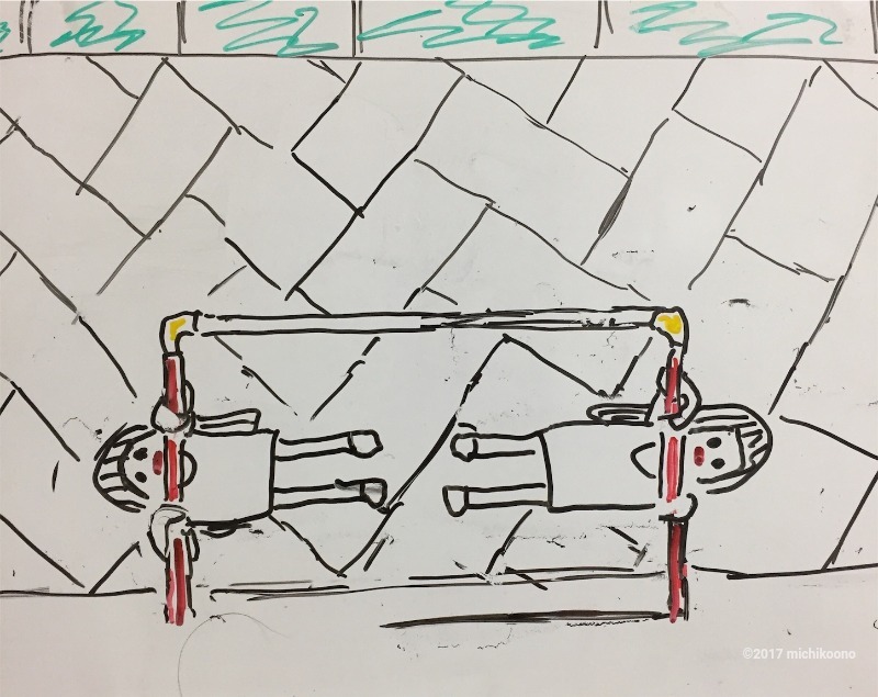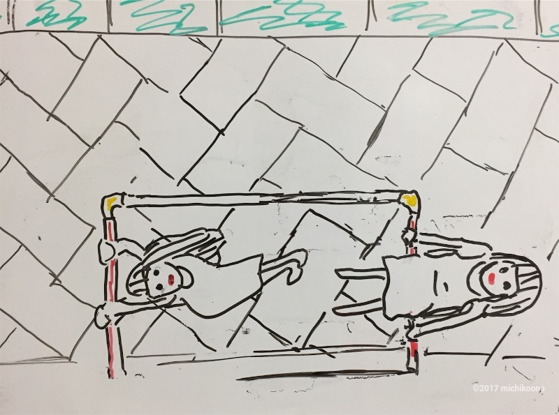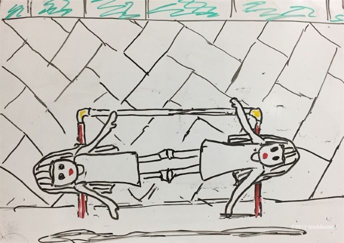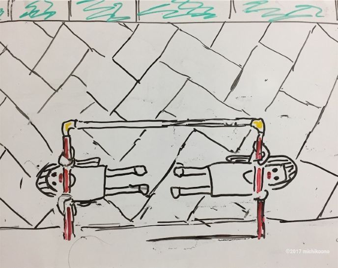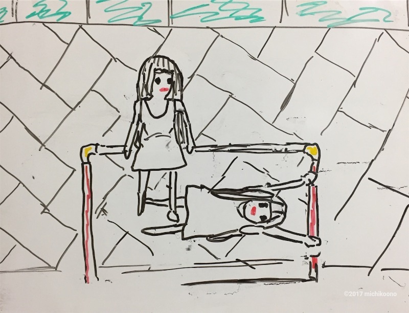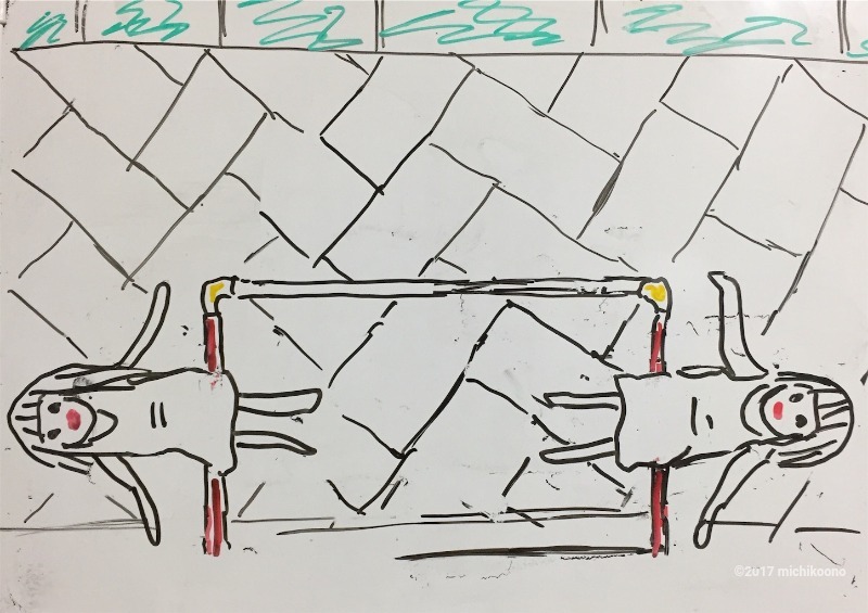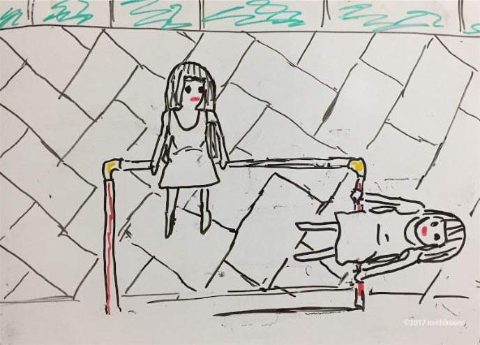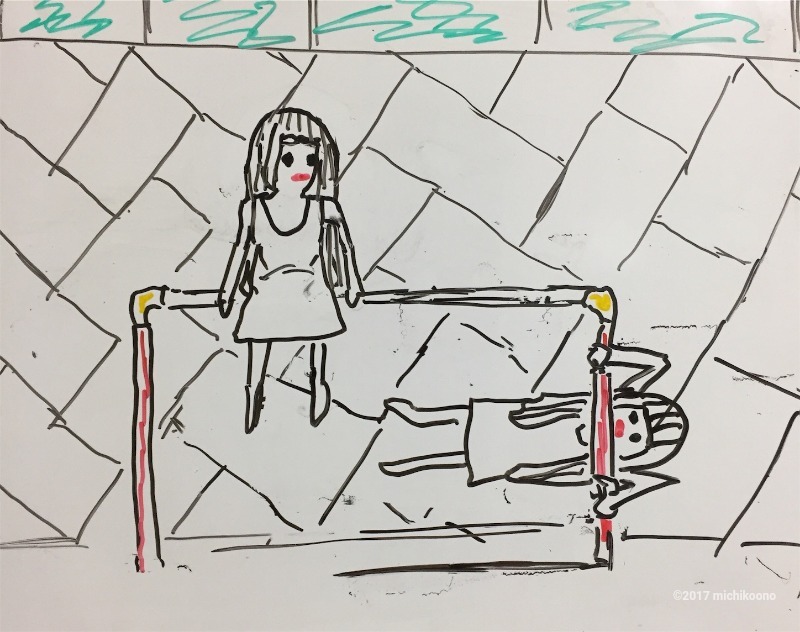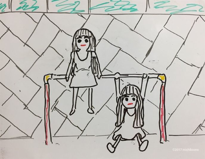 双子は鉄棒で遊んでいた
