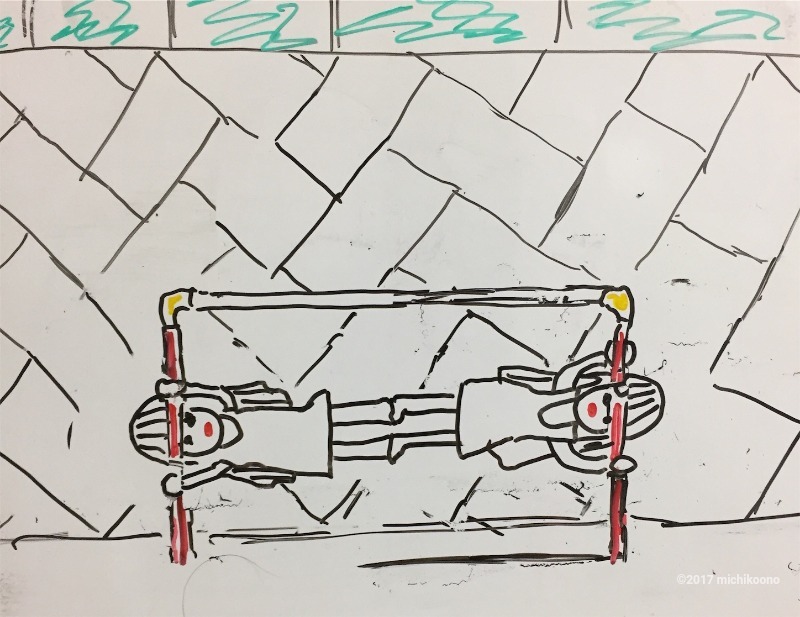 一本の鉄の棒に座っている事になってしまった