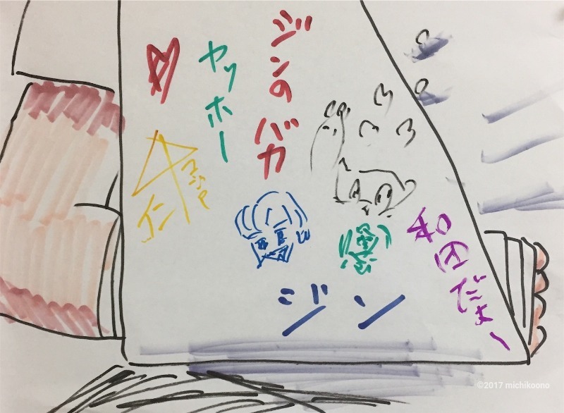 ジン君はもう一枚のボードに描いて