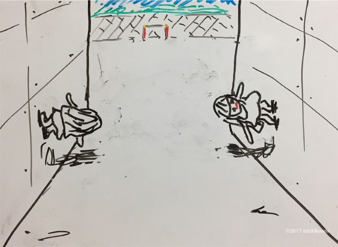 2人は無事 建物の間迄来て