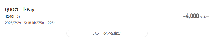 4000スコアが4000ポイントに そしてQUOペイ現在サービス中なので4240円に