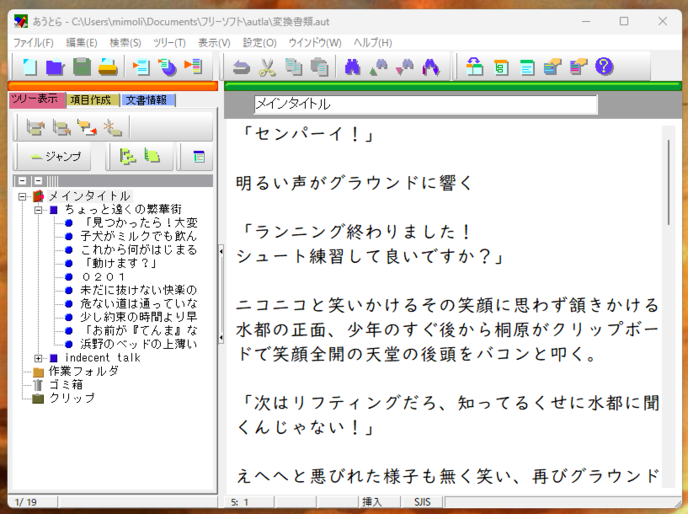 ツリーで文章管理 検索とか置き換えとか最低限必要な機能揃ってます