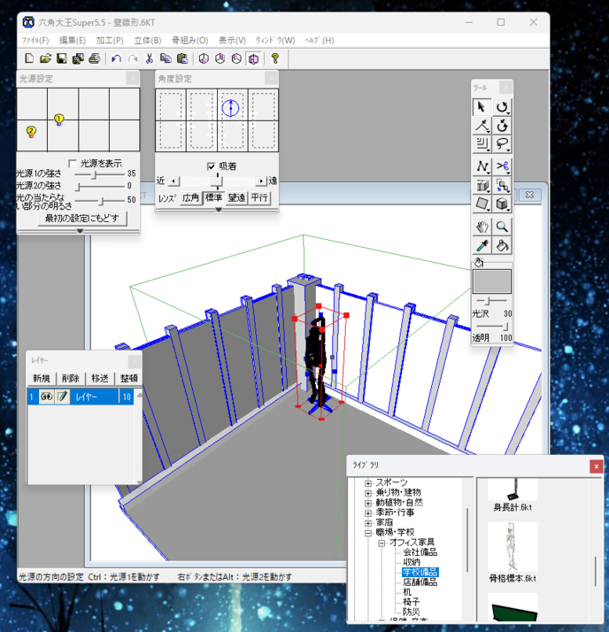 ライブラリにはわりと普通に使えそうな素材が入っていてドラッグするだけで使えるのがイイ!!です(なので本当は 机とか棚とか見本に置いても良かったんじゃけど 面白くないかなって←?)