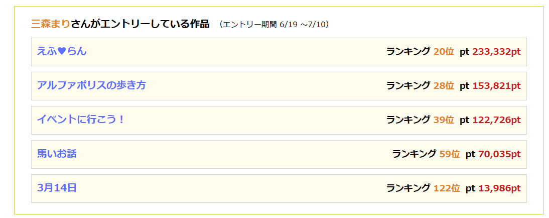 しおりを挟む「馬いお話」 毎日投稿してたら何時のまにか59位まで上がってました