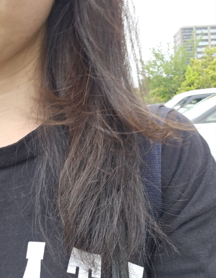 (20センチばっさり。染めてないのに茶色いな…)