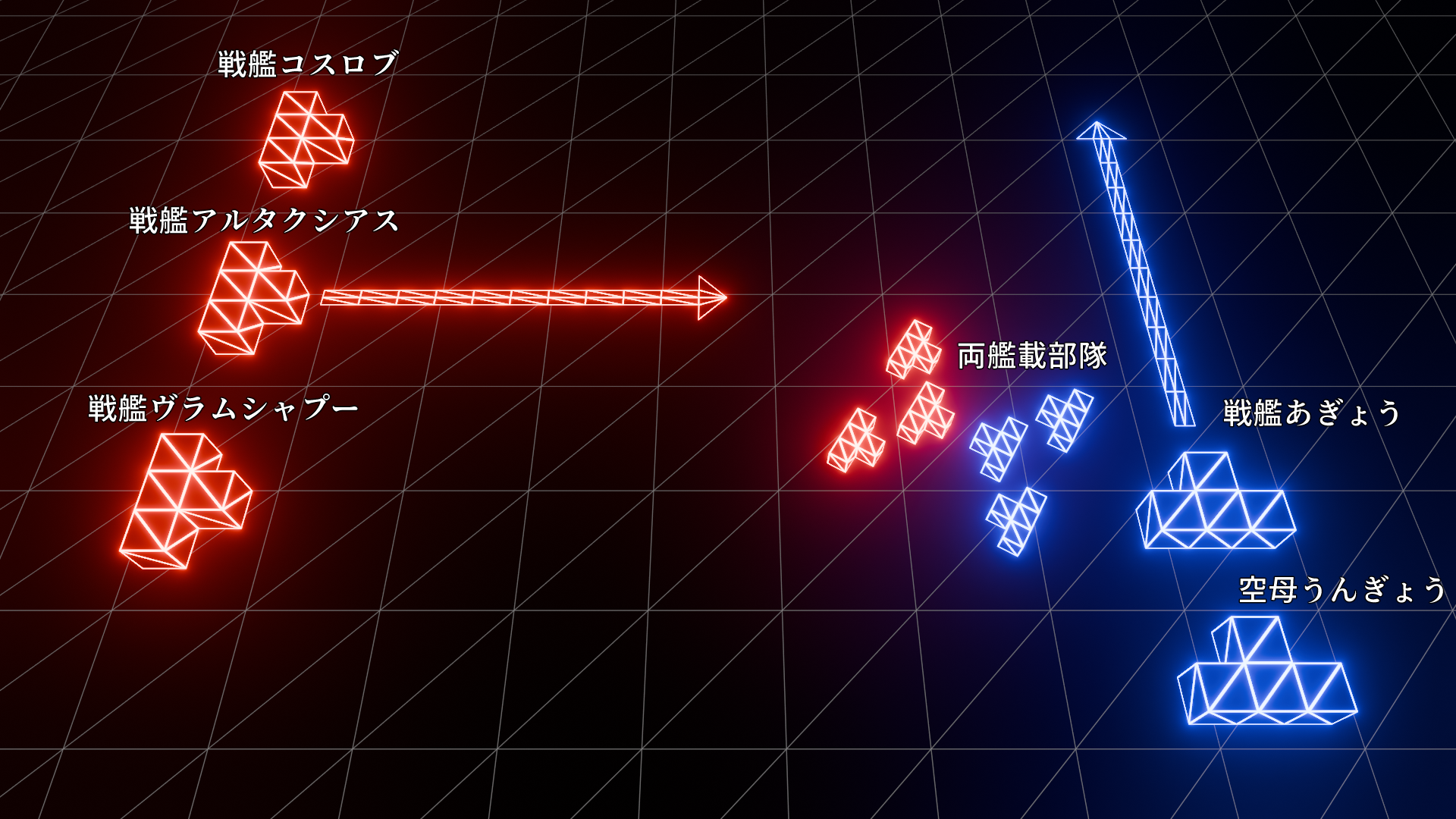 ハの国東部海域に戦艦〈あぎょう〉と空母〈うんぎょう〉が展開すると間もなくして艦内放送が鳴り響く。
