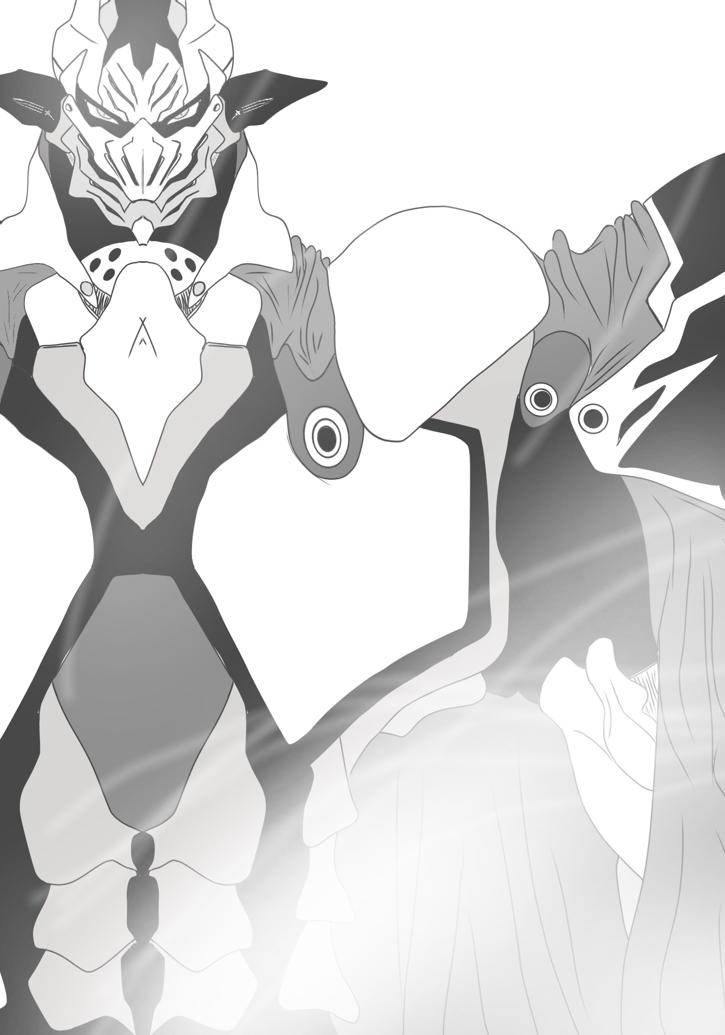 そして最後に緑地に降り立った巨大な影。重厚な鎧を纏い、兜の中から鋭い目で氷結島を睨む巨人。量産型エガスデライガが二体、巨人に仕えるように近付き両脇に陣取った。