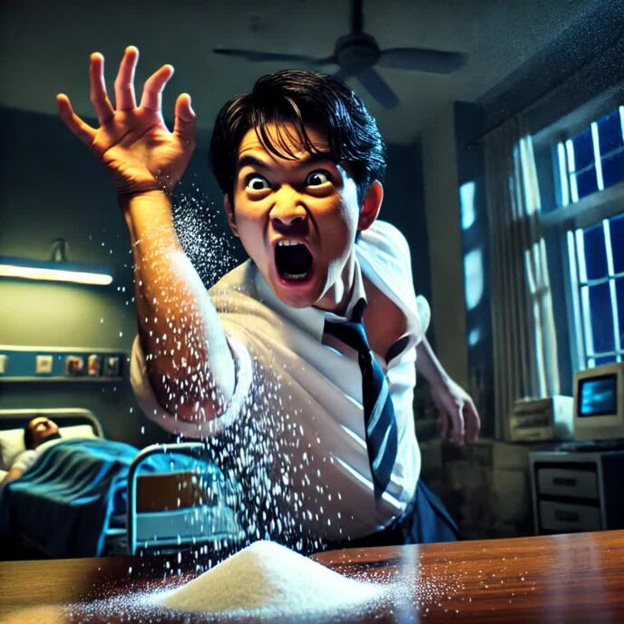 翔太は病室を飛び出し、どこかから調味料の小袋を見つけて戻ってきた。