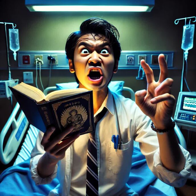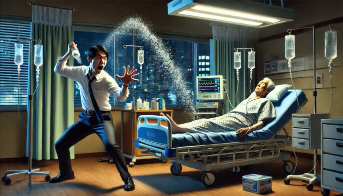 死神を追い払おうと必死になった翔太は、ベッド脇の水差しを掴んで男に向かって水をぶっかけた。
