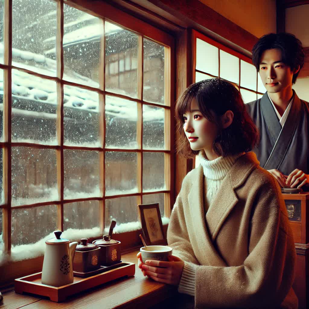 旅の最終日、私は早朝のカフェを訪れた。まだ誰もいない時間。外は薄く雪が積もっていた。