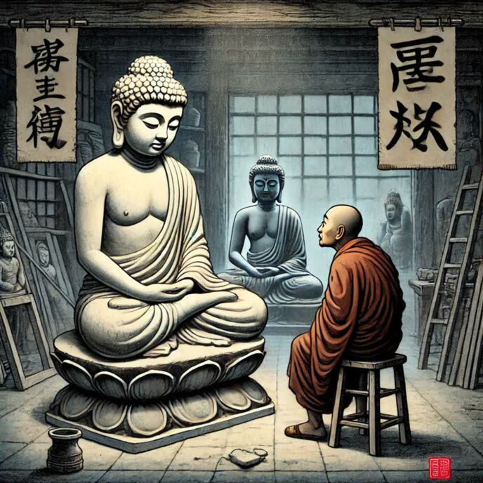 このことわざの由来は、仏教における仏像の制作から来ています。